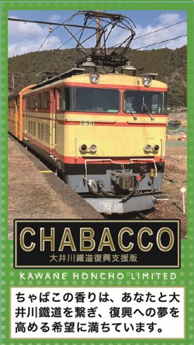 株式会社 KAWANEホールディングス(所在地:静岡県榛原郡川根本町、代表取締役:迫洋一郎)は、12月16日(月)より「Chabacco(チャバコ)大井川鐵道復興支援パッケージ 第2弾」を販売します。